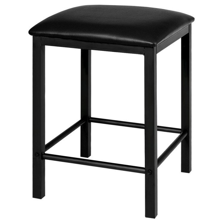 Includes one table and two dining stoolsThe table has a modern design due to the marble-style top & black-finished legsThe contemporary style of the stoolsStraight & fluent lines add a chic and elegant lookPerfect for any decoration style in your homeHigh-quality materials ensure years of sturdy useThe black finish of the iron frame & legs provides stabilityThe cushion of the stool is filled with sponge and covered with PU leatherDurable iron legs of stools can support a substantial amount of weightIdeal for small space; designed for one or two peopleDesigned to save space; reducing occupying areasAvailable for various places; both household & commercialEasy to assemble & clean