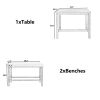 5.Dimensions and Warranty: Dining table:45.5x29.5x35.8inch(LXWXH); Dining Bench:38.2x15.2x20.9inch(LXWXH). 3 boxes in total which may not come together. 12-month warranty. Please feel free to contact us if any issues.