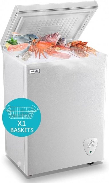 ENERGY SAVING & LOW NOISE: High efficiency and low energy and whisper-quiet consumption compressor makes this chest fridge can cool quickly without much noise.You can use the hanging basket to store smaller items and easy to slide, you can quickly see the items below.