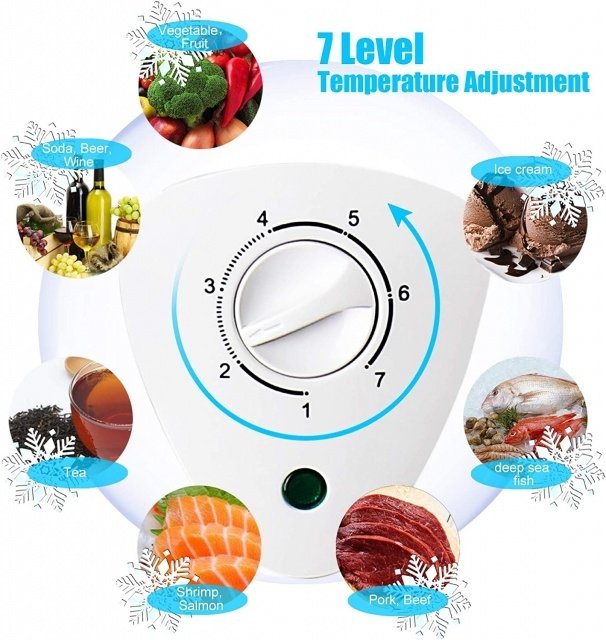 THERMOSTAT CONTROL: Adjustable 7-grade temperature control on Freezer to select your desired temperature.There are two fresh-keeping modes for you to choose. 1-2 level can be controlled from 32℉ to 50℉.3-7 level can be controlled from 32℉ to -11.2℉.