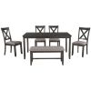 6-Piece Kitchen Dining Table Set Wooden Rectangular Dining Table, 4 Fabric Chairs and Bench Family Furniture