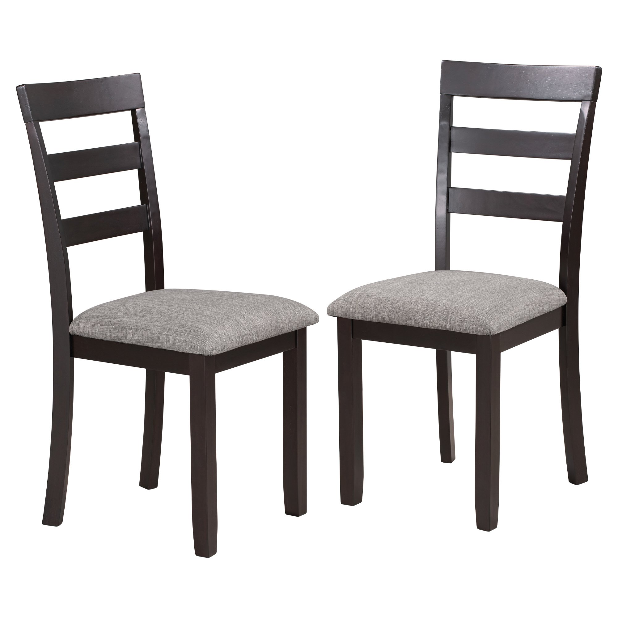 Gather around the table with this simplistic modern dining set, designed with a sleek silhouette and distressed finish. Refreshingly minimal and neutral in design, this dining set will seamlessly add that finishing touch you’ve been looking for. Accent wood grain detailing and fabric seating tie this set together perfectly, being capable of complimenting a variety design aesthetics in your dining room, kitchen area or home bistro.