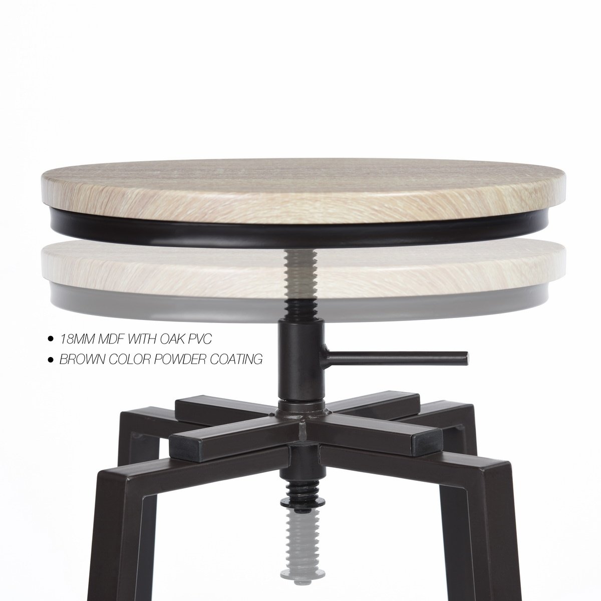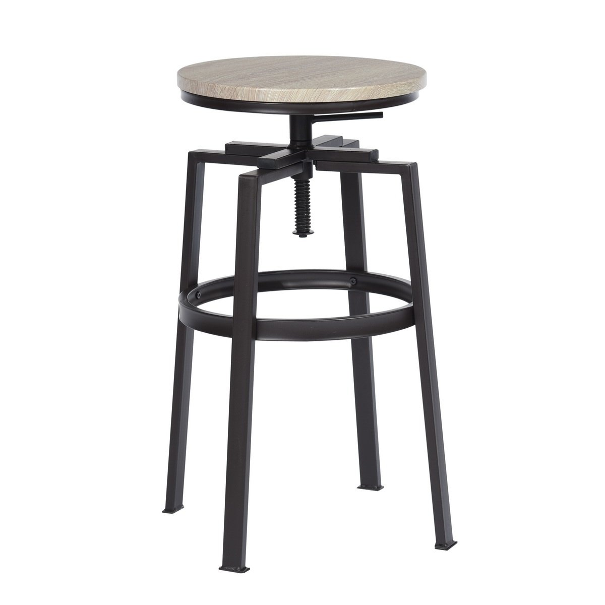 4.Brimming with industrial inspiration, this design showcases an antique finished wood like seat and a metal frame, this distinctive swivel bar stool anchors any space with a dash of industrial appeal.