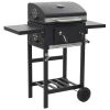 Using charcoal as fuel, this barbecue grill is suitable for grilling, broiling and smoking. You can monitor the temperature in the chamber with the integrated thermometer on the hood. Thanks to the powder-coated steel body, our barbecue grill has a sleek and stylish design and is very durable. It has 2 pieces of enamelled cooking grid and a heavy-duty hood. Two foldable side tables offer additional space for creating sauces or your favourite side dishes. Equipped with 2 castors, this grill is easy to move around. This barbecue grill will surely be an indispensable part for your outdoor activities!Color: BlackMaterial: Powder-coated steelOverall dimensions: 38.2" x 22.4" x 39" (W x D x H)Cooking area size: 16.9" x 12.6" (L x W)Height of cooking area from the ground: 32.3" Height adjustable charcoal trayWith an integrated thermometerWarming rack includedWith bottle openerWith bottom shelfFoldable side tablesWith 2 sturdy castors for mobilityWARNING There may be local legal requirement about using this product. Please follow the legal requirement.