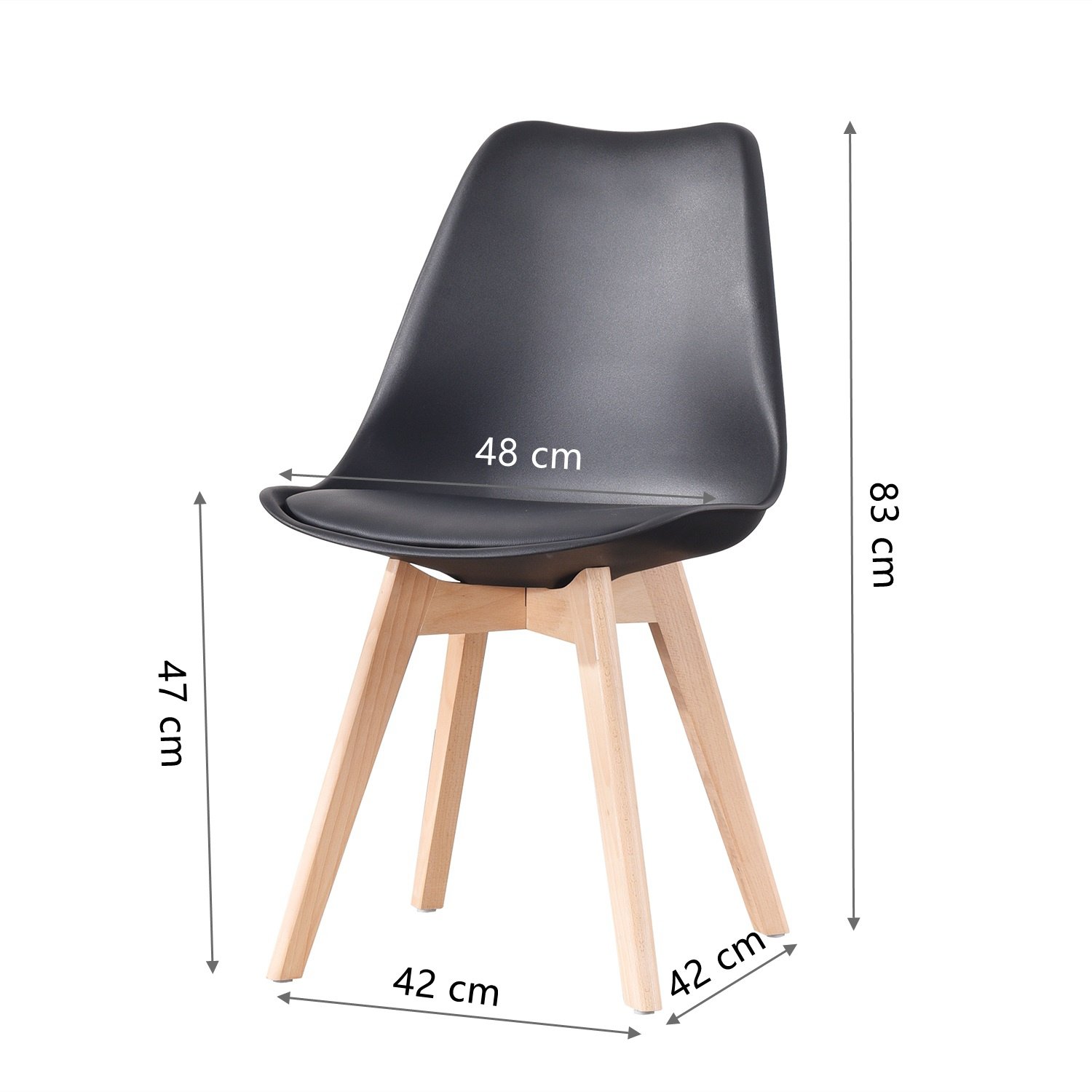 Dimensions - Seat Height: 47cm (18.5in) / Seat Depth: 42cm (16.5in) / Seat Width : 48cm (18.8in) / Total Height: 83cm (32.6in)