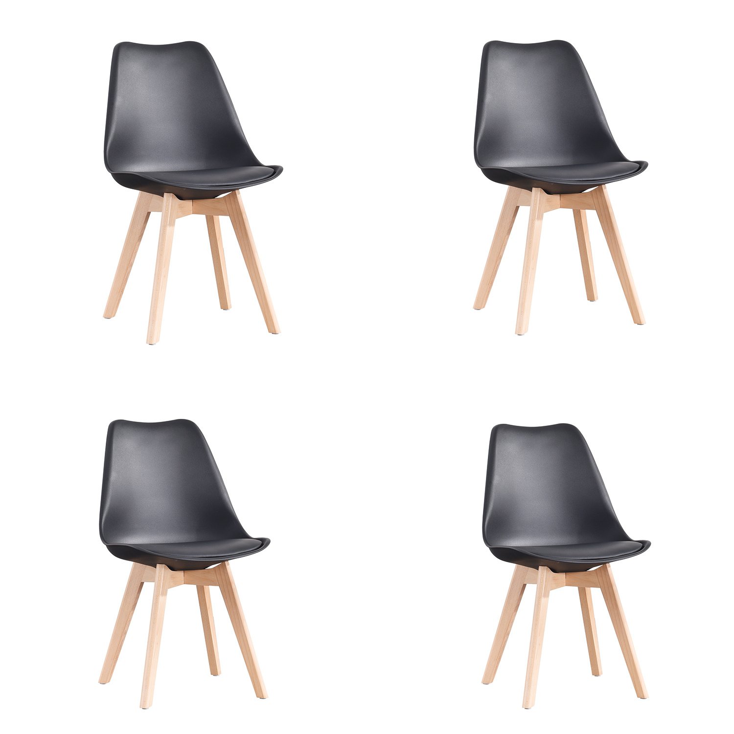 Home > EDLMH Set of 4, ABS PP Nordic Dining Chair with Beech Wood Legs for Dining Room, Living Room, Office, Bedroom, Black
