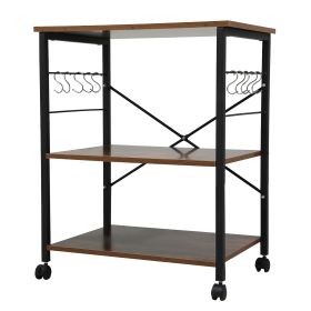 Simple Wood Kitchen Cart with 3-Tier Storage Space, Movable Microwave Stand with 10 Hooks - Brown and Frosted Black XH
