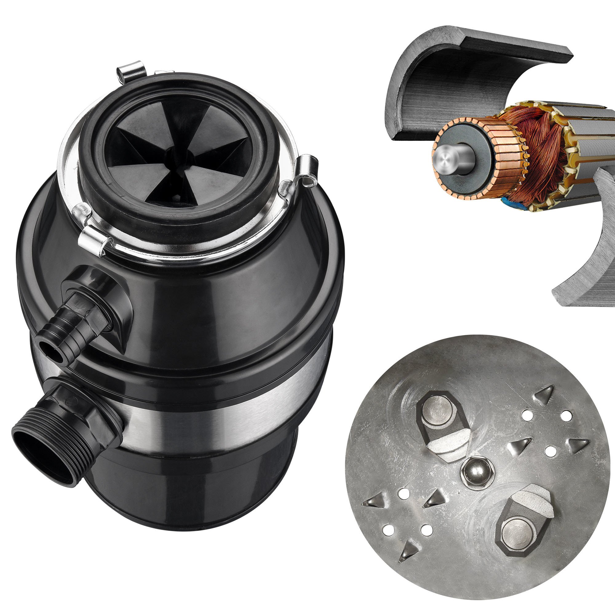 - Powerful Motor - 1/2 HP electric garbage disposal, featuring copper permanent magnet DC motor, offers 2600 RPM high speed for pulverizing food waste quickly and smoothly with low noise
