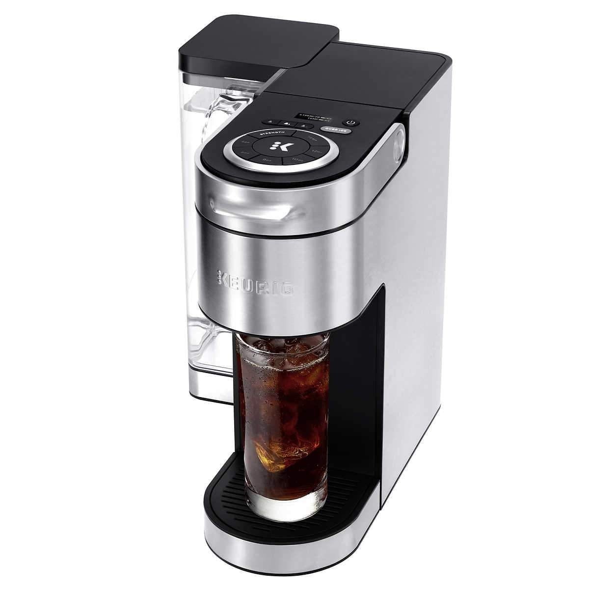 No matter how you brew; you can always enjoy 4; 6; 8; 10; or 12 oz. cups of your favorite coffee; tea; cocoa; and more – all freshly brewed in minutes. Choose from hundreds of delicious varieties of K-Cup pods or brew your own ground coffee with the My K-Cup Universal Reusable Coffee Filter (sold separately). The K-Supreme Plus coffee maker is travel mug friendly; and the large 78 oz. removable reservoir makes refilling a snap. And with a modern digital display screen and a sleek stainless-steel metal wrap; it's a striking standout in any kitchen.