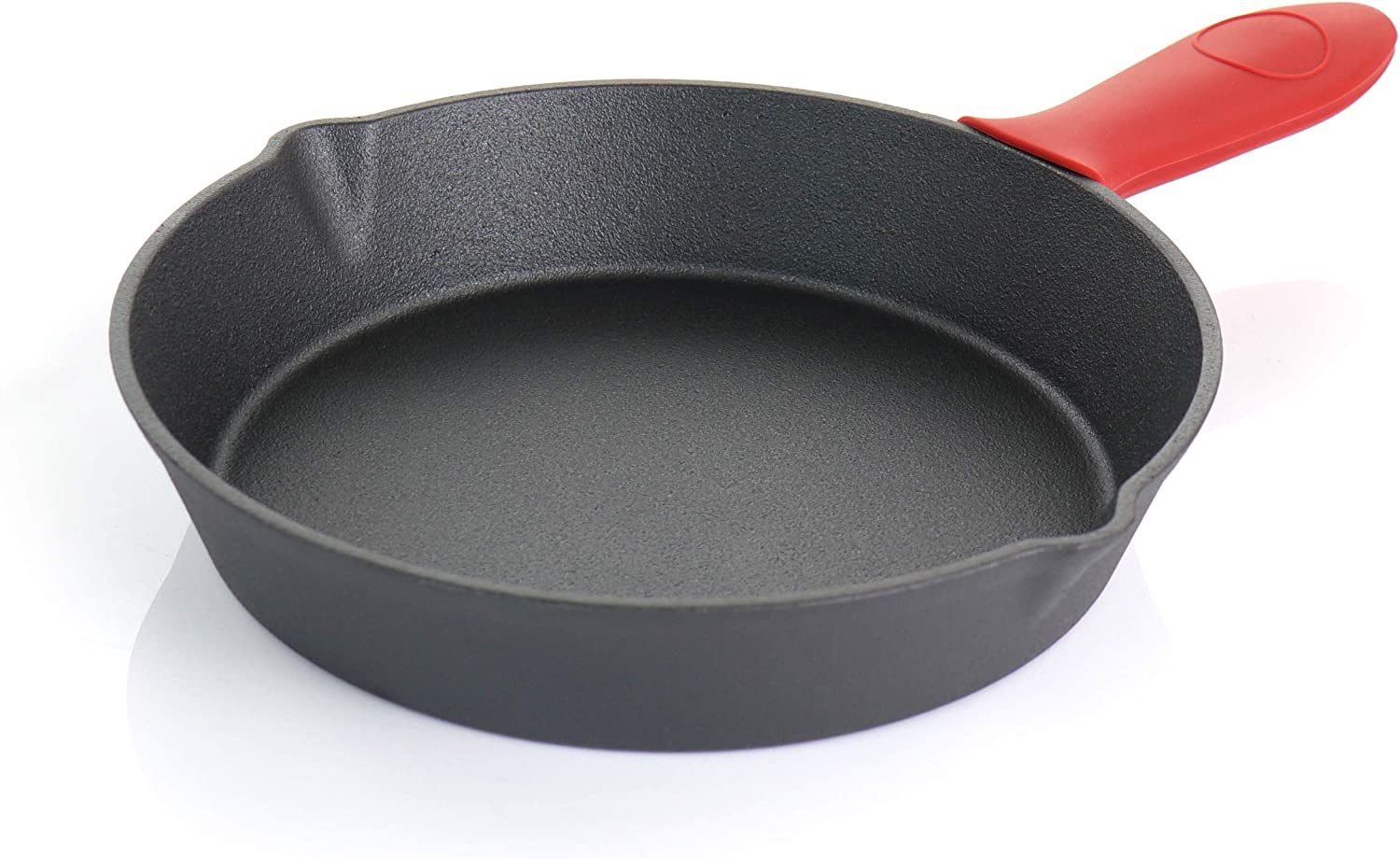 The MegaChef 4 Piece Cast Iron Skillet Set with Silicone handles is perfect for sautéing; searing; pan-frying; baking; broiling and roasting all your favorite meals. With the lifelong durability and versatility; the cast iron skillets combine rich heritage with modern needs. Offering a healthier alternative to nonstick skillets; the cast iron distributes heat evenly for a more flavorful dining experience. This cookware also moves seamlessly from the refrigerator to the stove-top or oven to the table for easy serving.