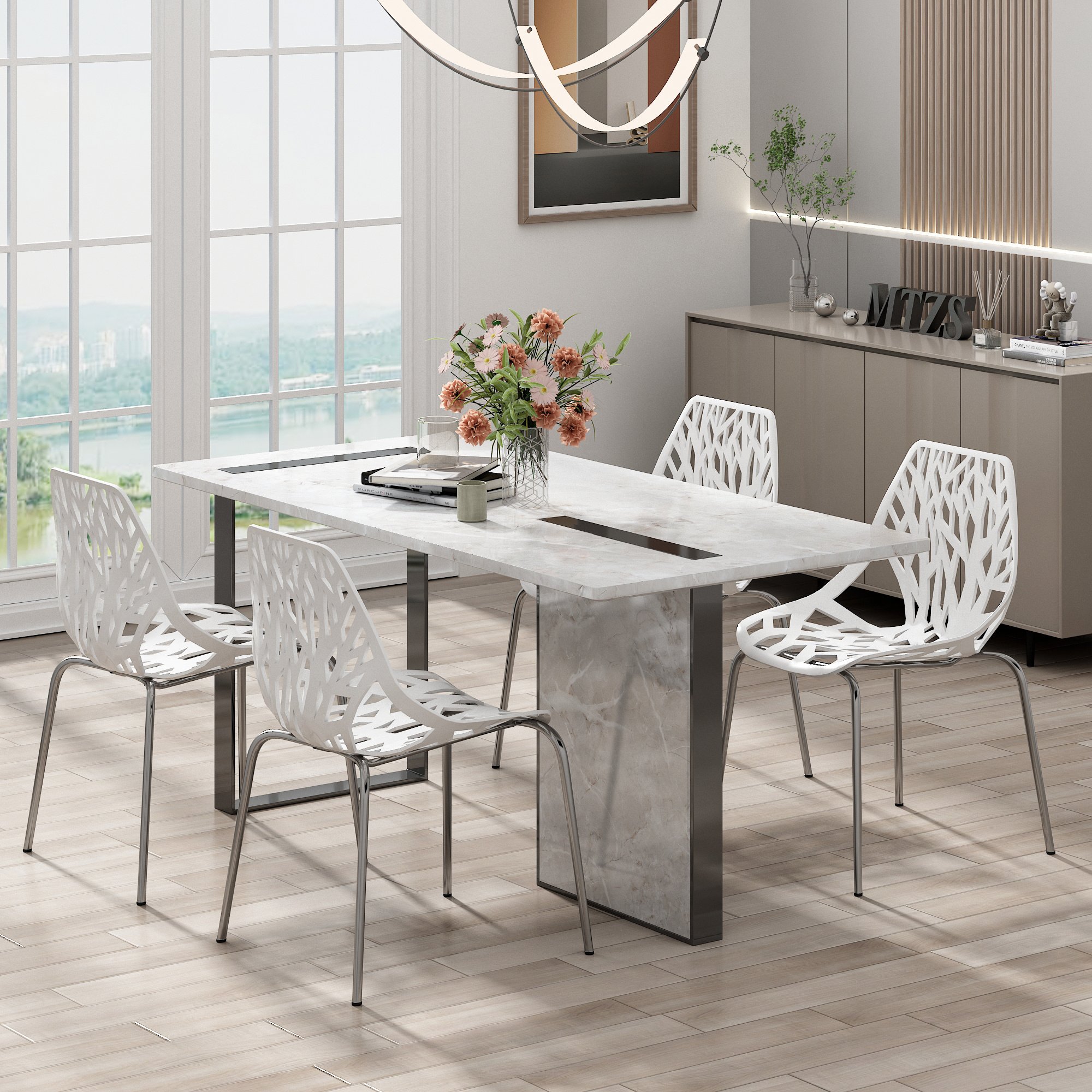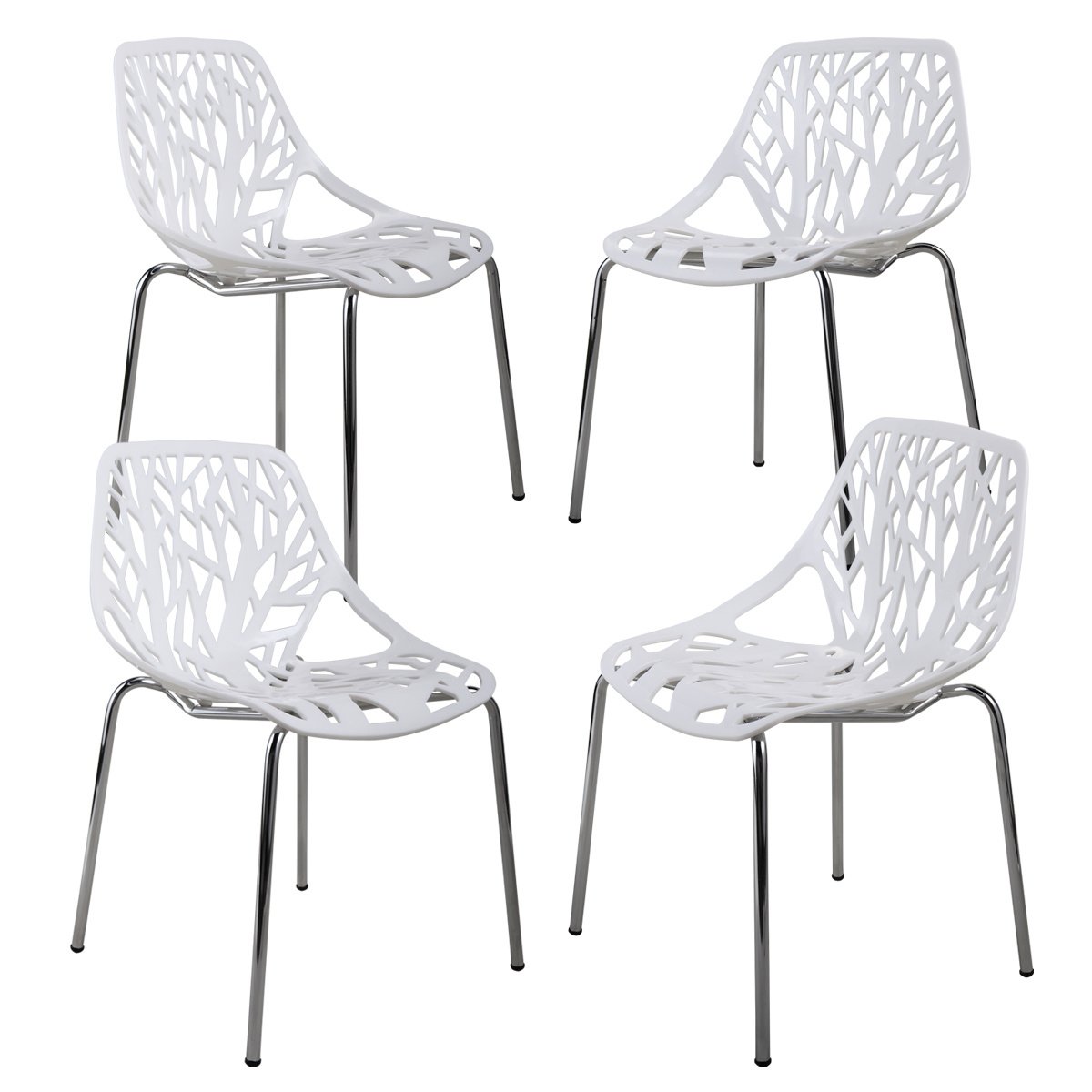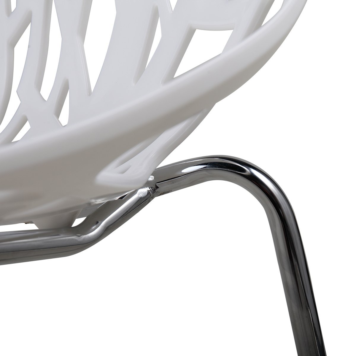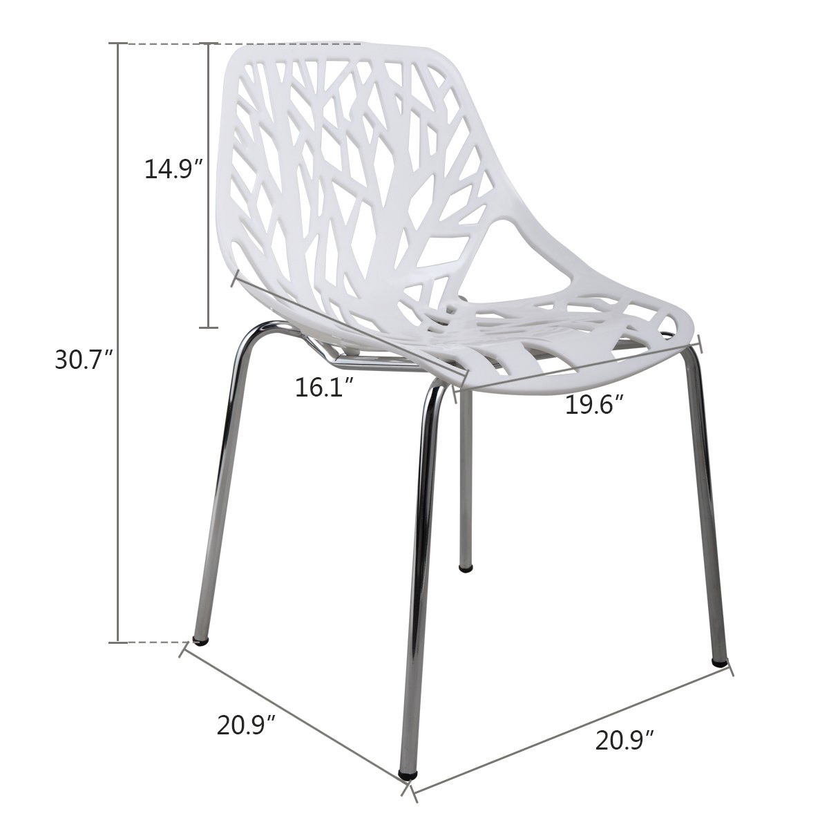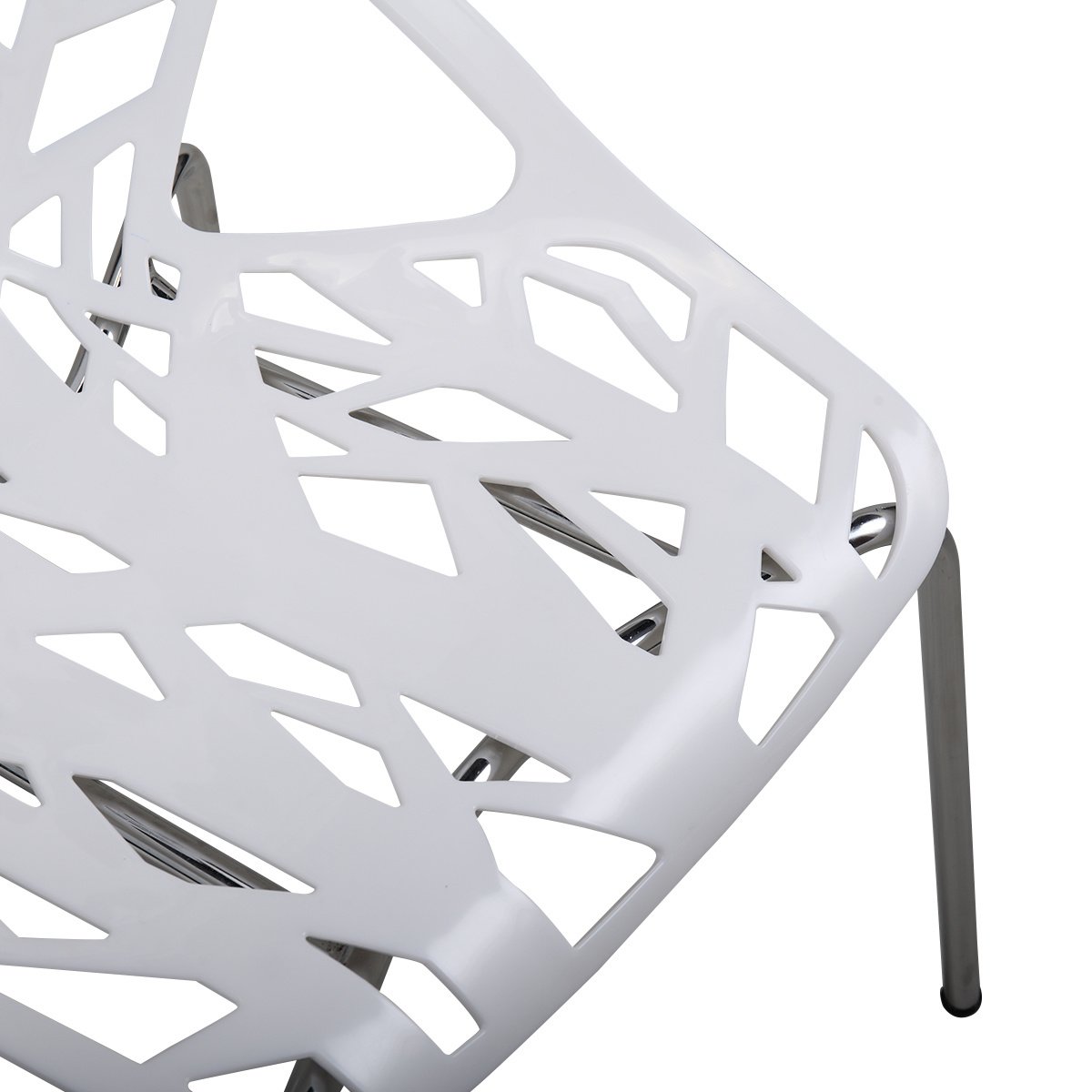 1.Modern Style:The white part of this dining chair uses a cutout design, like the look of tree limbs, which will blend with any existing decors well.