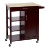 Home > Wooden Rectangular Kitchen Cart with 1 Door and Open Compartments; Espresso Brown; DunaWest